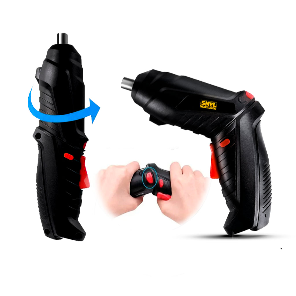 O Kit Parafusadeira Furadeira 48 Pçs À Bateria Carregador USB Dupla Posição da Snel Ferramentas é ideal para quem busca praticidade e qualidade. Com mandril magnético, torque de 3Nm, velocidade de 220rpm, lâmpada LED para áreas escuras, reversão eletrônica para giro nos dois sentidos e bateria interna para maior mobilidade. Compacta e leve, facilita o trabalho até em locais de difícil acesso.